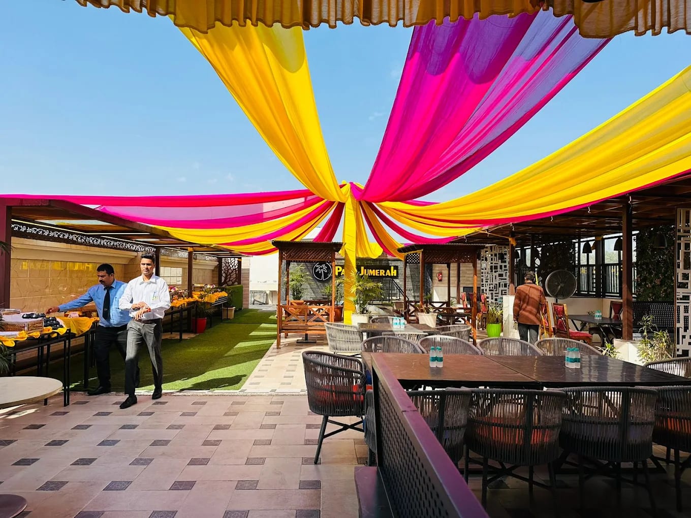- Multiple event zones — a lavish banquet hall, landscaped lawns, and pre-function courtyards designed for cinematic setups
